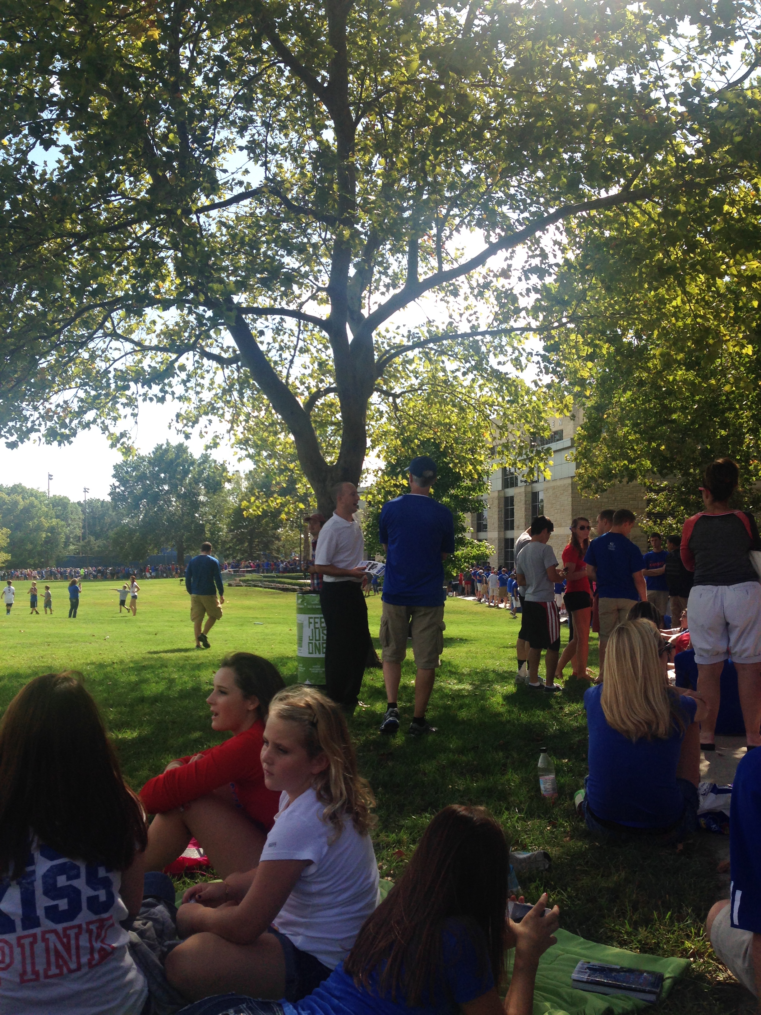 Allen Fieldhouse has a capacity of 16,300 and some students guesstimate they saw almost 25,000 people waiting in line to get into the Fieldhouse on Friday afternoon. As the doors opened that night, students in the back of the line rushed forward cutting in front of people waiting in line for hours, and ultimately taking their spot in the Fieldhouse.